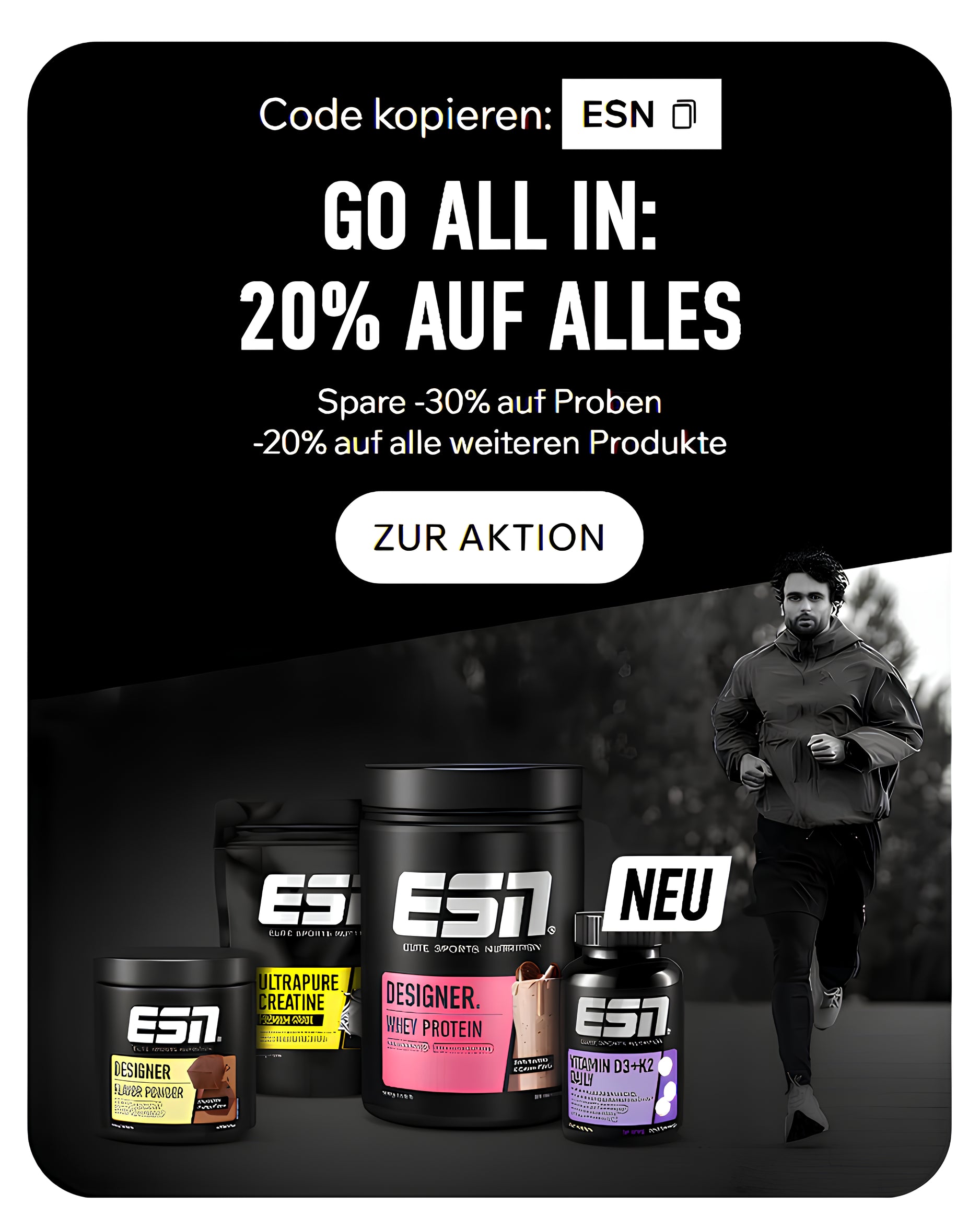 Melde dich für unseren Newsletter an und sichere dir -15% auf deine erste Bestellung. Plus: wöchentliche Top-Deals, Expertenwissen und exklusive Vorteile – direkt in dein Postfach. Hol das Beste aus dir heraus – mit ESN!